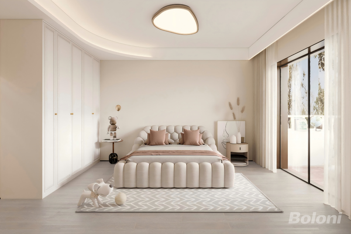 女孩房以柔润成长为设计内核,打造适配少女全成长阶段的灵动私域,兼顾浪漫质感与功能灵活性。空间不做固化分区,在明晰休憩、学习核心功能区的同时,预留充足可改造空间,舒展动线适配不同成长阶段的活动需求。收纳柜体、学习桌均为木板现场定制,可灵活调整内部格局,适配玩偶、绘本、文具等多样收纳需求,且与全屋木作色系统一。清柔浅调铺就空间基底,软装可随心焕新,既藏少女专属的浪漫细腻,亦能适配审美进阶,让空间成长。