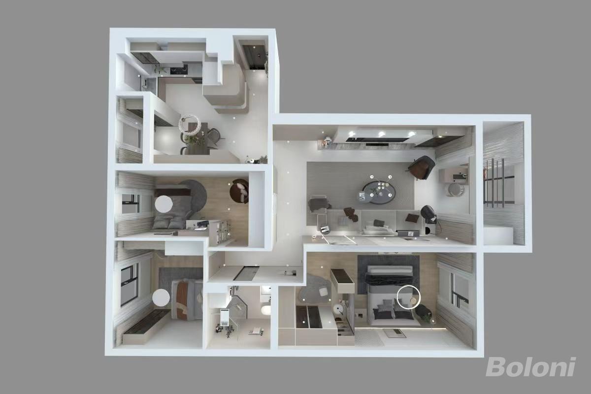 整体是暖白色调加点缀一些黑色