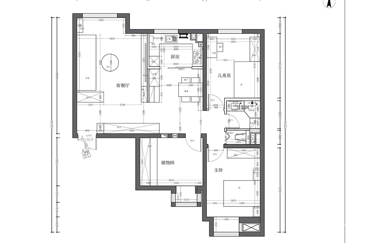 以客餐厅为公共活动核心,优化空间动线,实现动静分离。主卧保障私密,儿童房适配成长,整合储物间与厨房功能,提升收纳效率,打造温馨通透、实用宜居的全家庭空间。