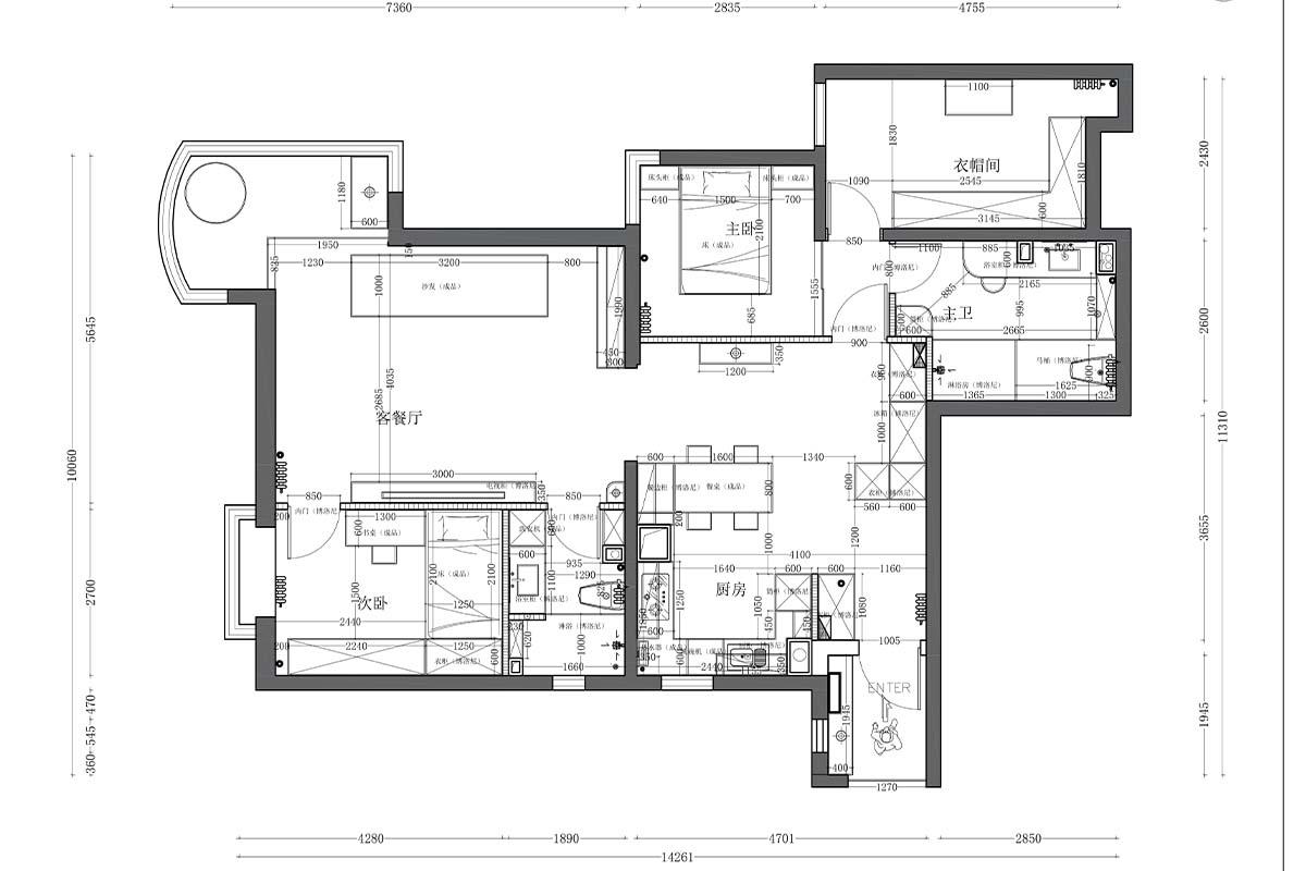 以客餐厅为公共活动核心,强化动静分区,主卧套间提升居住品质,次卧满足多元需求。厨房动线合理,收纳系统完善,最大化空间利用率,打造通透舒适、功能齐全的改善型住宅。