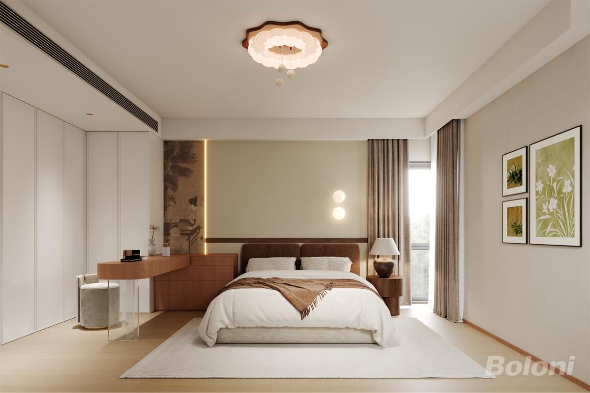 以温润原木、东方意境、松弛氛围为核心,打造出兼具仪式感与舒适度的睡眠空间,通过材质层次丰富空间质感。