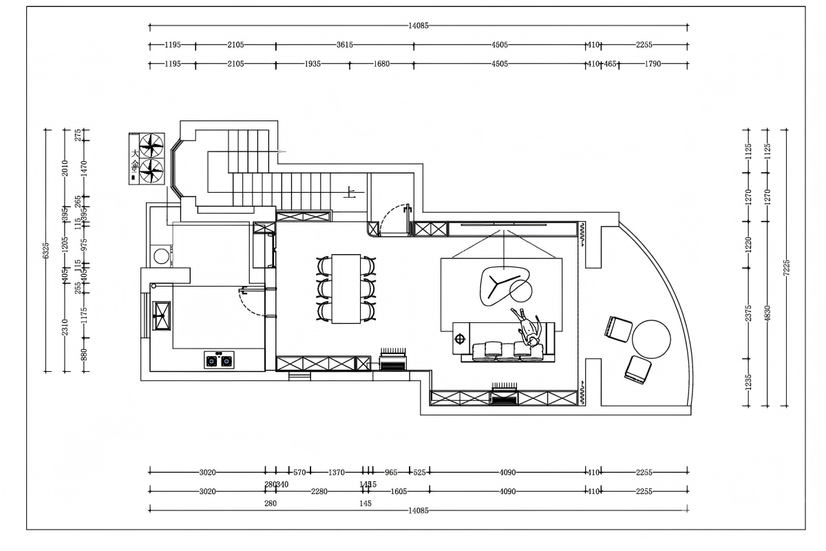 本案为两层复式住宅,以温润木作与柔和暖调为基底,打造松弛治愈的居家氛围。一层布局开放通透,客餐厅一体化设计,搭配弧形阳台拓展采光与活动空间,餐厨动线流畅,楼梯区做造型优化,兼顾通行与视觉层次。二层规划私密起居空间,设置双卫、主卧与休闲区,衔接户外露台,满足休憩与社交需求。整体延续效果图的复古松弛感,以弧形元素、温润木饰面与艺术软装呼应,在功能上实现动静分区,于美学上营造温暖治愈的居家质感,适配多元生活场景。