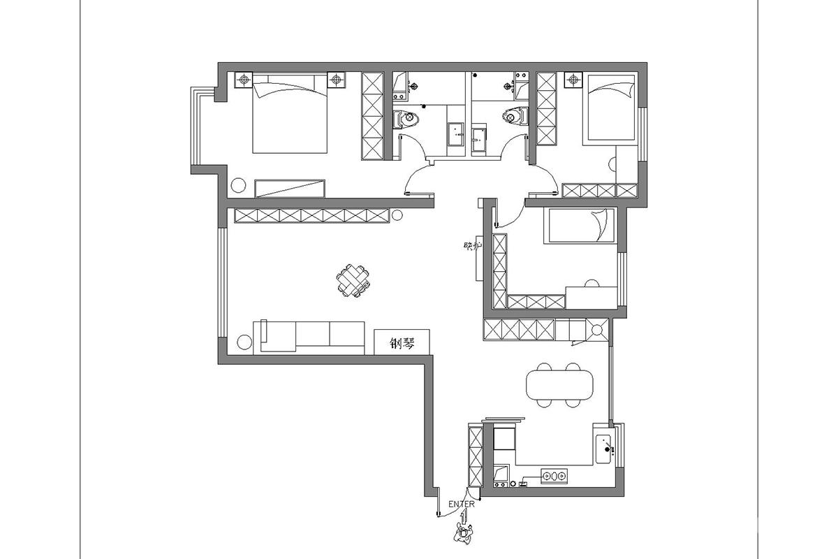 入户-餐厅-厨房-客厅动线流畅无遮挡,家务与亲子互动动线高效,放大空间通透感,同时预留钢琴区,兼顾功能与美学。卧室静区与客餐动区完全分离,互不干扰,保障休息私密性;双卫布局合理,满足全家日常使用需求。户型方正无浪费,功能灵活可变,适配成长型家庭全周期居住需求。