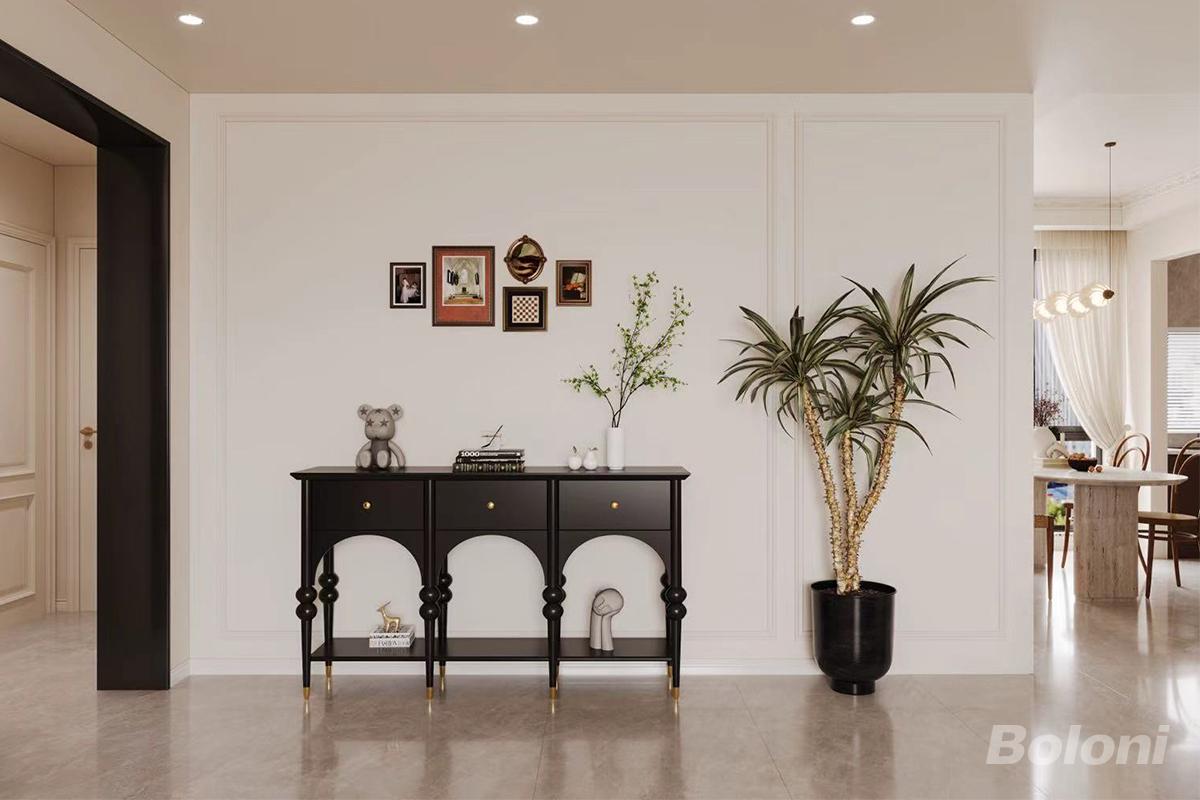 入户走廊打破了传统走廊“仅作交通”的局限,以奶油风为载体,实现了“每一寸空间都兼具颜值与实用”的设计目标。