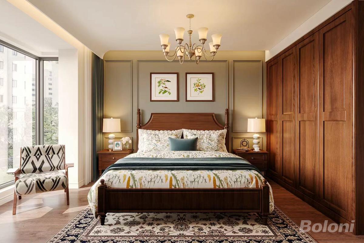 水晶吊灯的金、边柜的复古红、石膏线的白,精准呼应法式风格的复古优雅,让色彩与风格深度绑定,而非单纯的色彩堆砌。