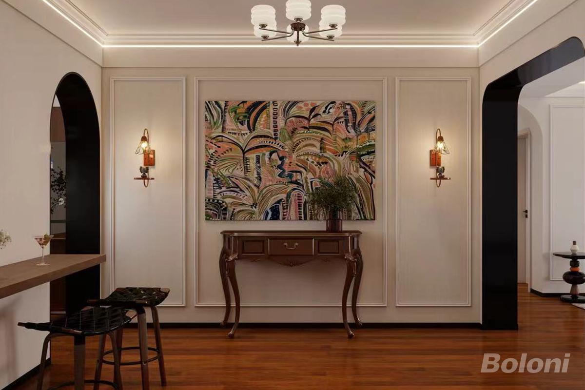 没有冗余堆砌,用对称构图、艺术软装与复古质感软装,把原本单调的过道,变成归家极具仪式感的艺术过渡角落,优雅又充满松弛浪漫的复古腔调。