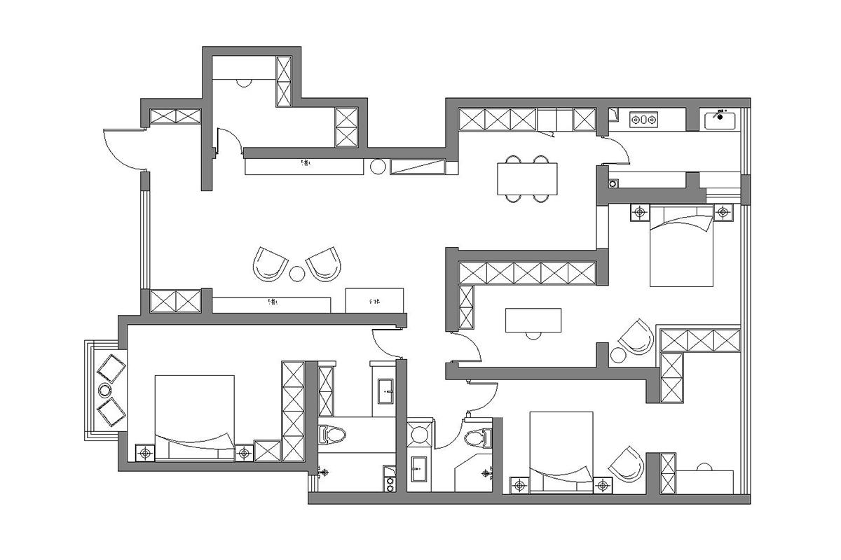 入户及过道端景动线,不再是单调走廊,而是串联全屋的景观过渡带,移步换景,行走间满满的归家仪式感,大户型的舒展尺度被完全释放,整体动线短而不绕、通透不局促,既满足多人口家庭的实用刚需,又保留了大宅的舒展松弛与审美质感。