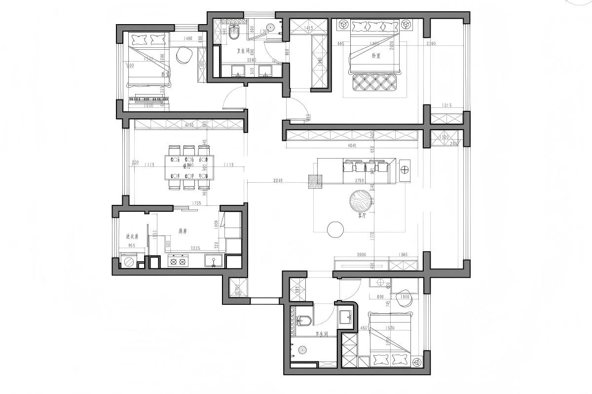 本三室两厅两卫户型,以侘寂美学的「质朴松弛、自然留白」为核心逻辑进行规划。客餐一体化通厅以开阔留白的格局,弱化多余动线,营造松弛通透的公共场域;卧室区独立静谧,远离喧嚣,打造疗愈的休憩角落;厨卫与独立洗衣房的布局,以实用为前提简化动线,保留空间的呼吸感。整体以克制的规划,平衡居住功能与侘寂美学,于规整的空间中,藏着返璞归真的松弛与安宁。