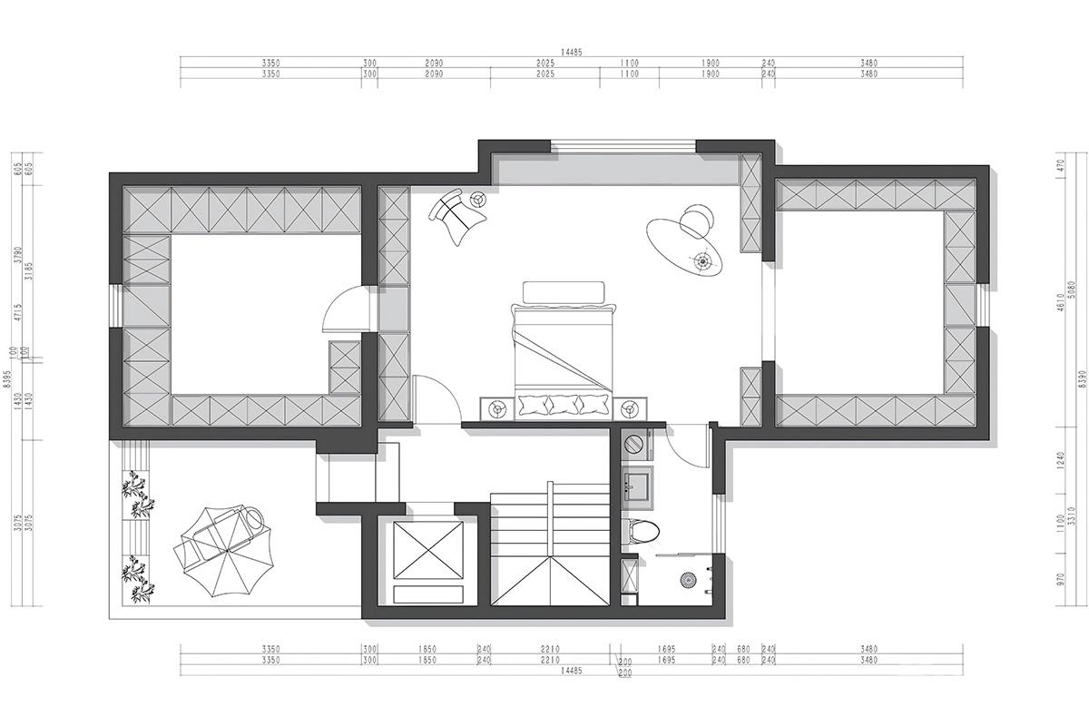 阁楼以「主卧套房 + 户外露台」的形式,打造了一处专属顶层的静谧休憩空间。 主体为完整的主卧套间,搭配独立卫浴与步入式收纳区,为屋主提供了极致私密的休息环境;两侧大面积的露台被纳入规划,一侧可作为户外休闲区,享受顶层的开阔视野与自然景观。整体空间功能纯粹,动线简洁,让阁楼成为远离喧嚣、独享静谧时光的私人领地。