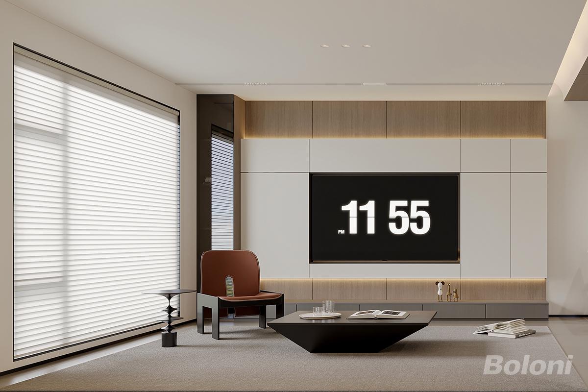 这是一套意式极简风客厅,贯彻了意式克制的美学逻辑,低饱和奶灰调铺满空间,干净通透又自带高级质感。简洁的哑光硬包背景墙无冗余装饰,搭配悬浮矮沙发与异形磨砂茶几,利落线条尽显意式简约。拼色艺术单椅注入细节巧思,打破单调。线性氛围灯搭配百叶柔帘,让自然光温柔入户,以温润材质与简约线条,打造出低调奢华、松弛有度的意式居家氛围。