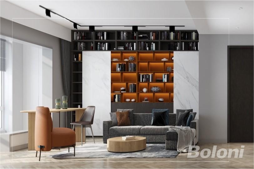 极简别墅装修都是采用到开放式的布置,整体给到宽敞明亮的视觉。客厅的布置到点、线、面、量体之间纵横。搭配的元素之间的堆砌,客厅地板采用的是玻化砖,玻化砖里材料成分含有微晶石产品,显示出档次高,能装出奢华效果,而且硬度也是非常好的。沙发是采用了黑色皮沙发,属于极简主义的黑白范畴。