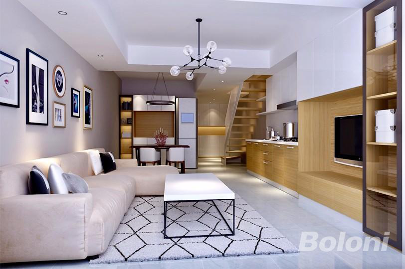 小户型属于实用性住宅,这意味着其整体风格也不能随意指定。要想在相对较小的空间营造出空间感,房间的主要色调一定要是浅色系,而且颜色图案不能过多过杂。因为深色系和多样的图案,需要一定的环境才能充分展现出其多彩绚丽的特点,如果房间的面积比较小,很容易会让人感觉杂乱拥挤,失去其原有的功能。通过浅色系和相对简单的图案,整个房间的氛围会更舒适。这也是大部分小户型都使用现代简约风格的原因之一。