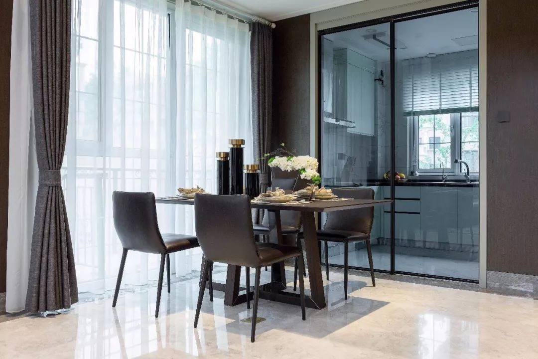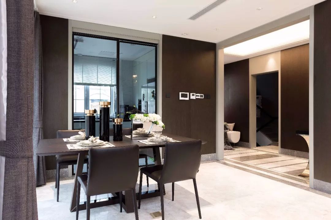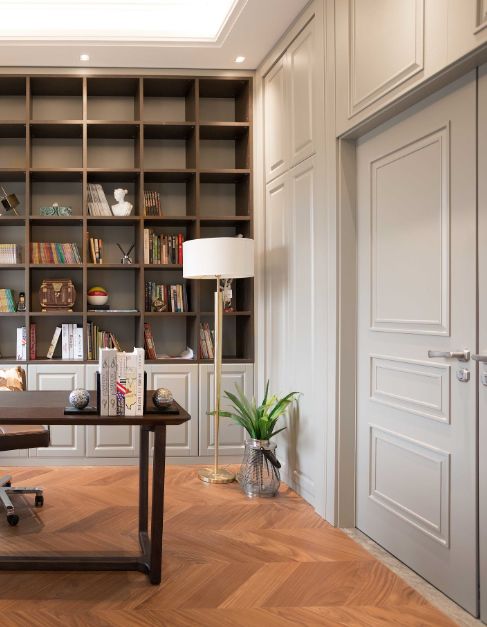 书房是男女主人所钟爱的地方,色彩浓郁的棕黑色和温柔婉约的米白色相得益彰,书房也是精神生活的寄托,家庭生活除了一日三餐,还应该有英雄梦想,找寻到内心的一份宁静,给梦想以容身之所,为日常的琐碎赋予更多诗意。