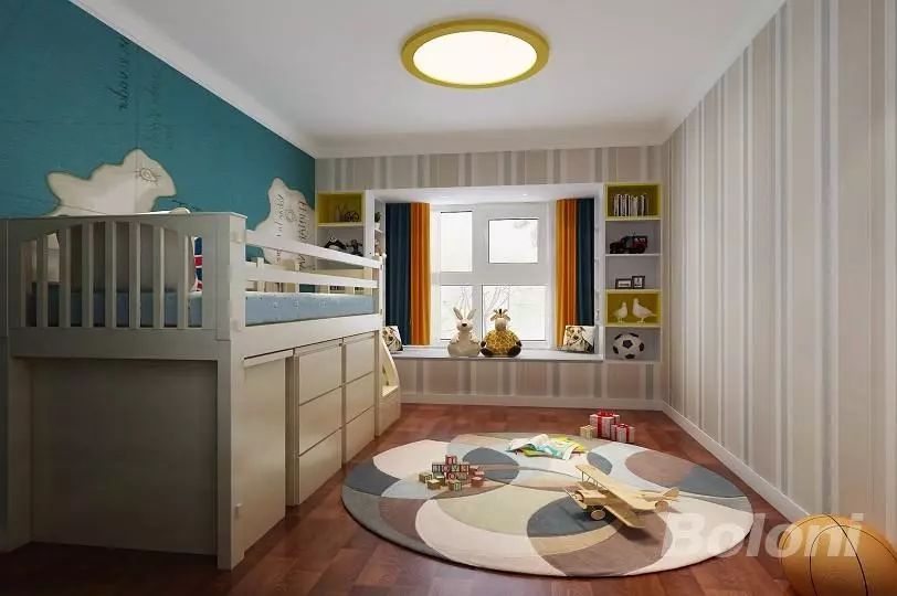 相对于冰冷坚硬的瓷砖,质感温和的实木地板、软木地板,更适合儿童。孩子们都喜欢坐在地上玩耍,因此,一张温暖防滑的地毯,是每个儿童房的必备。为孩子挑一张美美哒的地毯吧,他/她会更享受在房间里的时光。