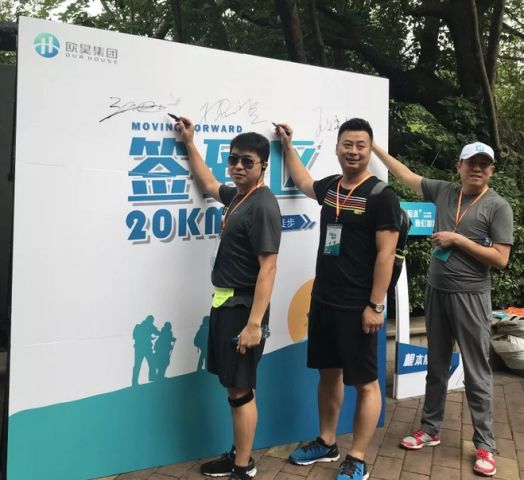 欧昊集团张栋梁董事长(左一)也准时到场与大家一同爬山,令人没想到的是,张董事长从出发就稳稳保持在第一方阵,令不少平日里缺乏锻炼的团队成员汗颜。