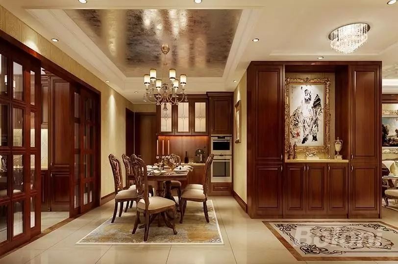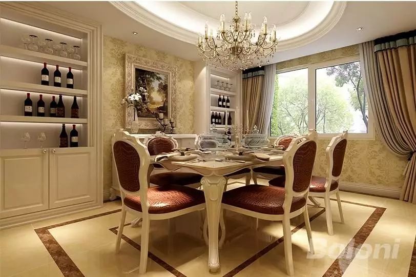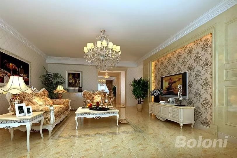 此户型装修风格为低调奢华欧式风格,设计中打破了传统欧式古典设计的观念,将皇家古典的部分装饰元素融入设计,使整个空间高贵典雅,客厅大气,沉稳,采用一些暗花壁纸,硬包等高档材质,体现业主的内蕴品性。