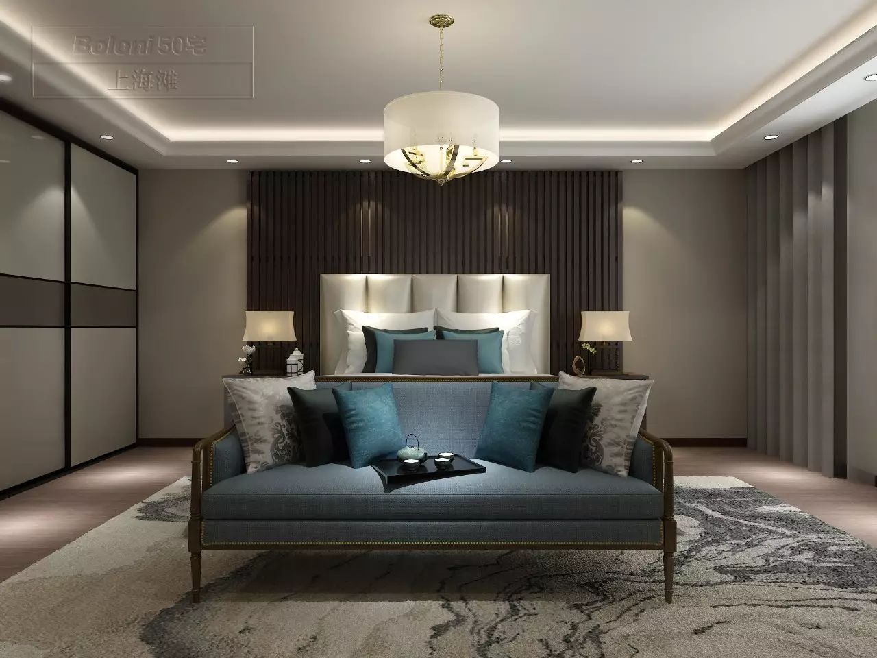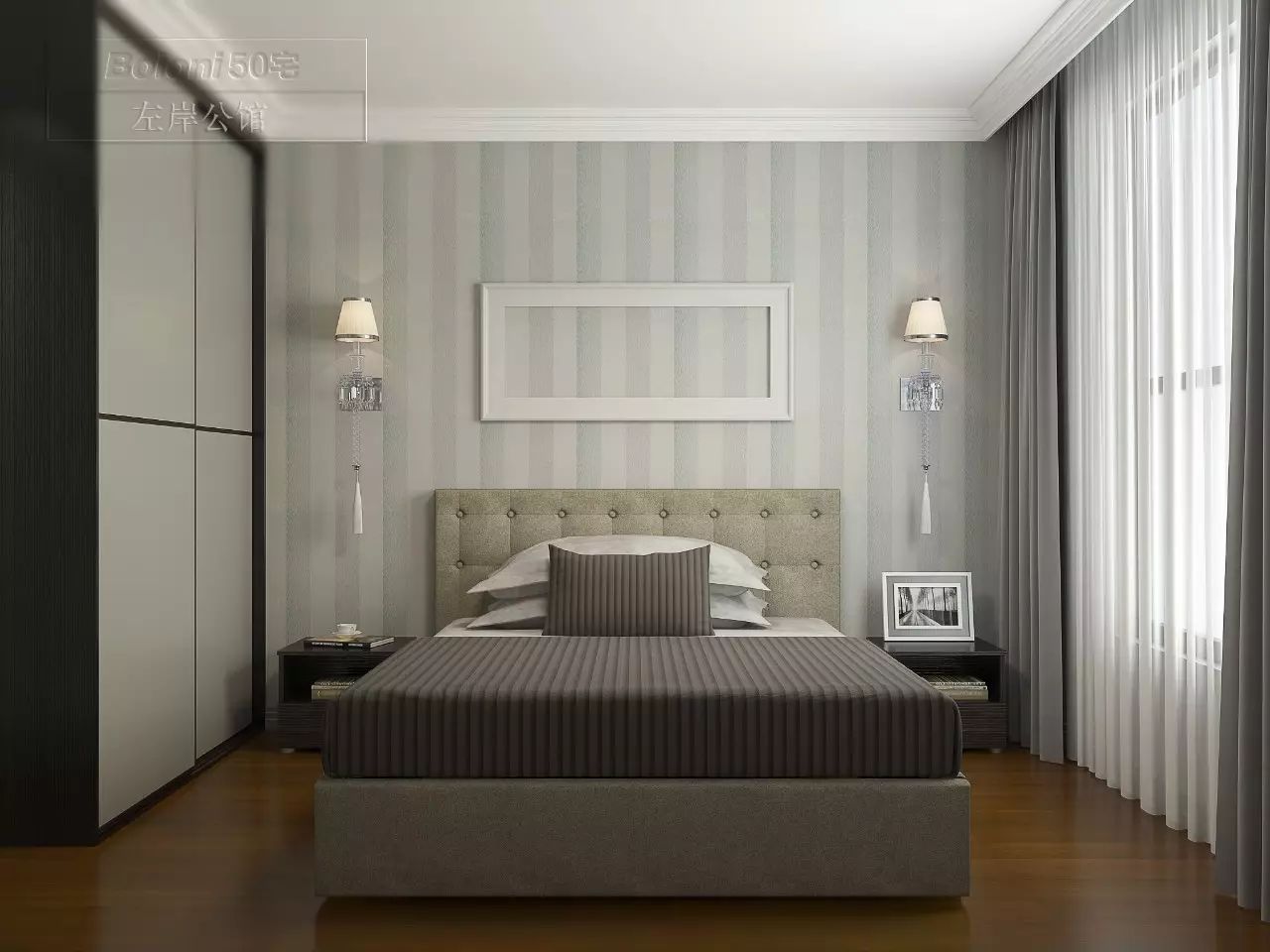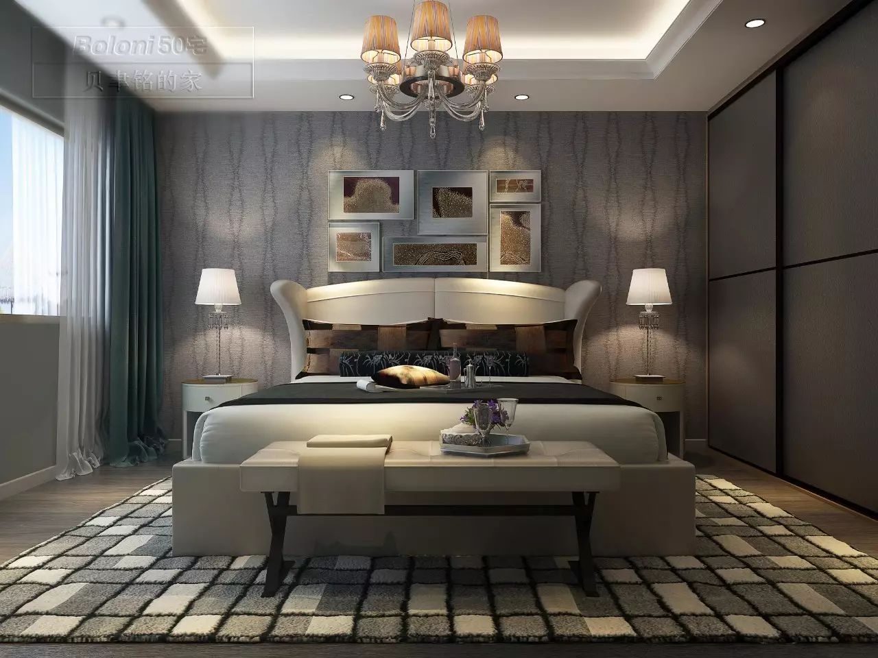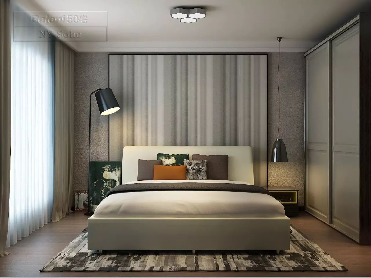 卧室空间8件套:主卧背景墙+移门衣柜+床头柜+软床+床垫+灯+窗帘(2)