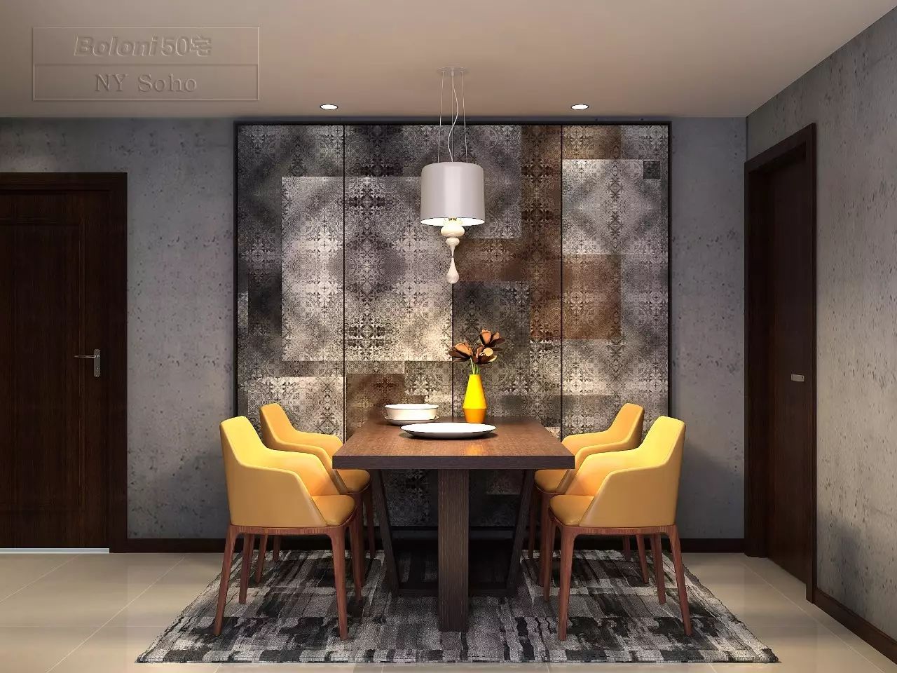 △ 餐厅丨酷酷的烤漆打印墙板,图案来源于意大利的哥特元素,散发出浓浓的工业风味道。
