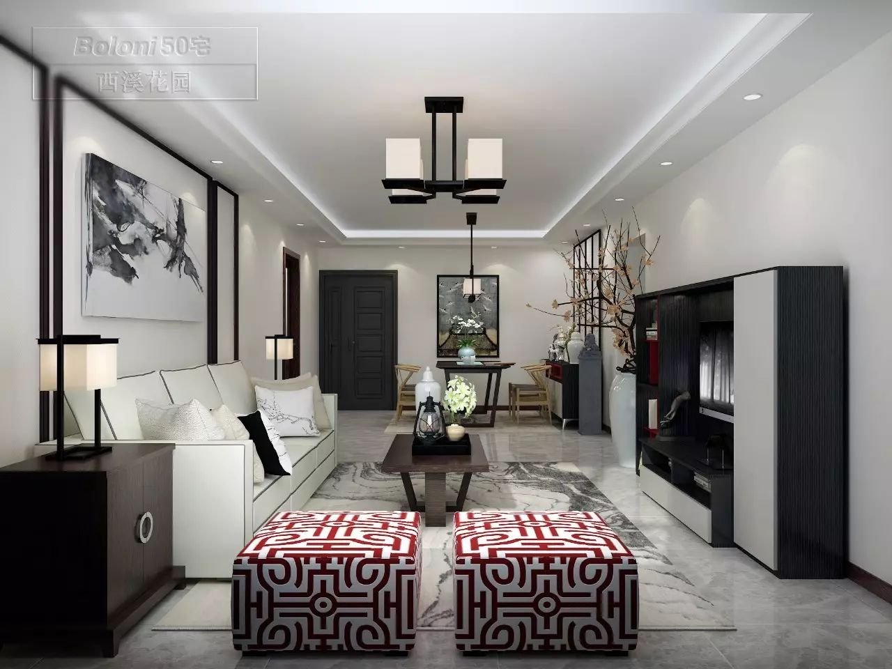 △ 客厅丨贝聿铭用“简与繁”的关系诠释他的中国风――“迷宫”墩子点亮主题;收纳强大的博洛尼独家万能插入格厅柜中加入了中国红点缀。简繁之间妙笔生花。