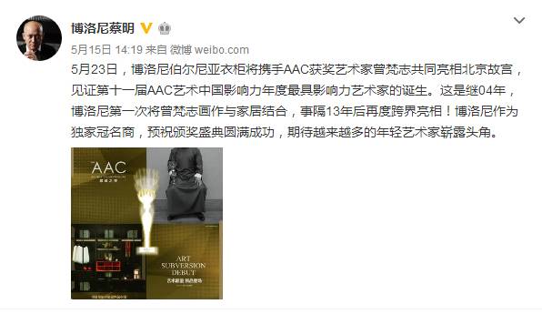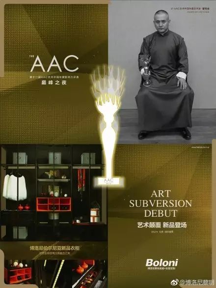 5月23日,第十一届AAC艺术中国年度影响力评选“巅峰之夜”将在故宫举行,作为中国当代艺术的标志性评选,本届AAC艺术中国获得博洛尼品牌的全程冠名赞助。