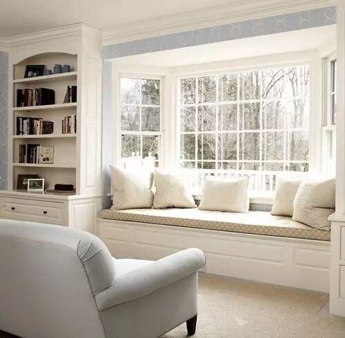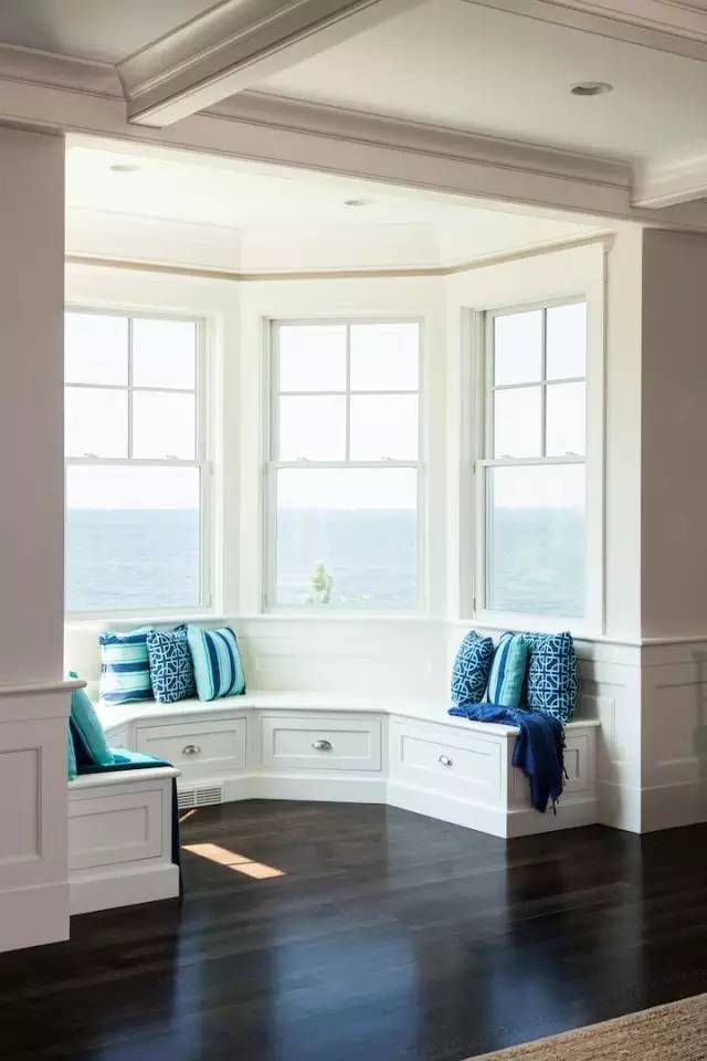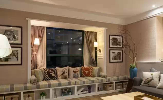这种飘窗比较常见,看书发呆什么超有feel,家里来客人也可在此落座,绝对是一件让你的朋友为之羡慕的事。