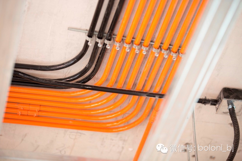 博洛尼电线主要采用涂塑镀锌线管,绝缘性强,照明线路采用2.5平方塑铜线。