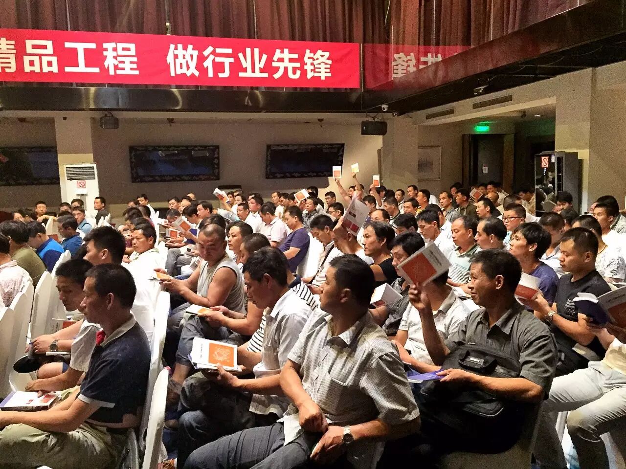 7月20日,一场关乎工地革命的运动大会在博洛尼内部隆重召开。到场的相关领导、工程经理、项目管家、工长及负责人等三百多位悉数到场,现场更是座无虚席。醒目的橙色背景,醒目的红色标语,简单却不减分。去掉繁复的修饰,回归质量本身,我们一心只做良心工程。