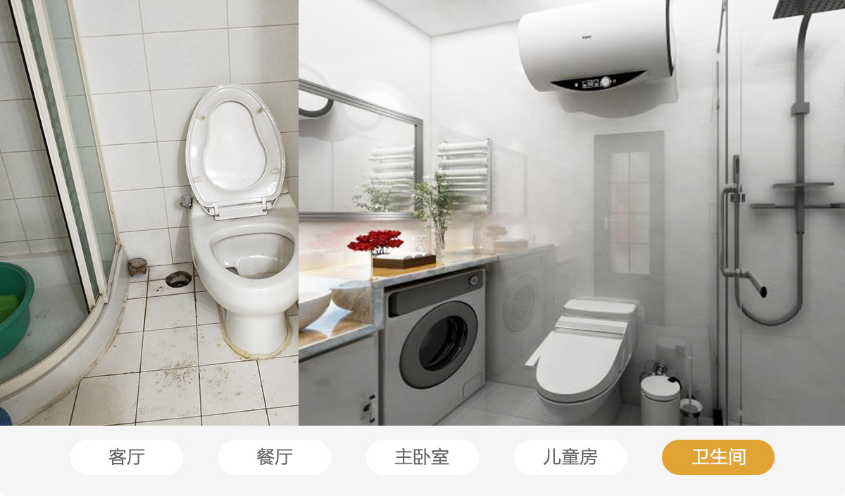 B. 卫生间:一个卫生间没有干湿分区、使用时间、空间会有冲突。
