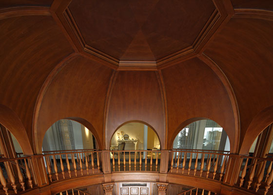 穹顶整体木作方案的顶尖技艺摒弃市场上惯用的钢筋混凝土外包木质结构,实现穹顶大厅全实木化结构。
