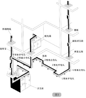 概述:主干路使用热浸锌线槽,末端支路使用涂塑热浸锌线管引至末端。所有线路均采用线管下引,不采用或极少采用地面敷设。照明线路采用2.5平方塑铜线,插座线路采用4平方塑铜线。专用接线端子与跨接地线。构成完美的电路施工系统。(图1)