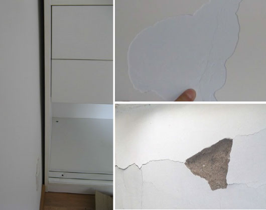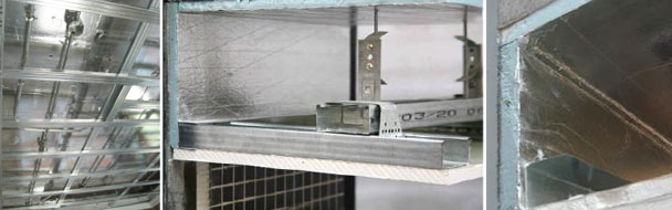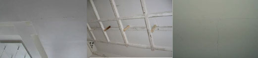 原因分析:结构形变、拼缝处理简易、石膏板形变、连接不牢固、龙骨体系不稳定、冷凝水腐蚀板面