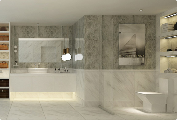 此时,装修工程已进行大半,房间格局和基础色调已完成。安装好开关插座、洁具灯具、厨柜以及其他柜体等,设计方案中的房间雏形基本呈现。